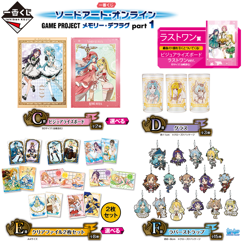 大人気アプリゲーム「ソードアート・オンライン メモリー・デフラグ」と、一番くじのコラボ商品が登場です。