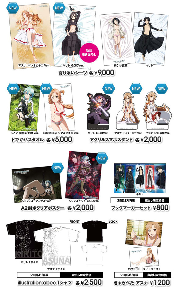 期間中、「ソードアートオンライン」関連の書籍、キャラクターグッズをご購入・ご予約(内金)1,000円毎に1点、CD、DVD、BD、ゲーム商品をご購入・ご予約(内金1,000円以上)1本毎に1点、A4ポスター(6種)をプレゼント